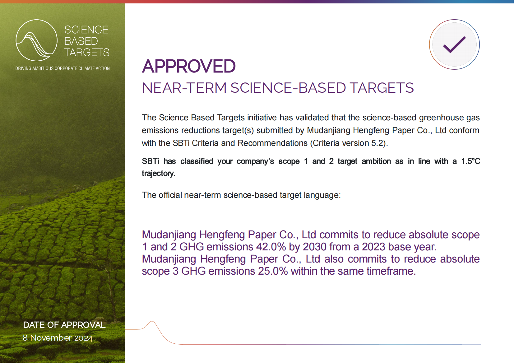 恒豐紙業(yè)成為中國(guó)首個(gè)明確科學(xué)碳目標(biāo)的特種紙企業(yè)