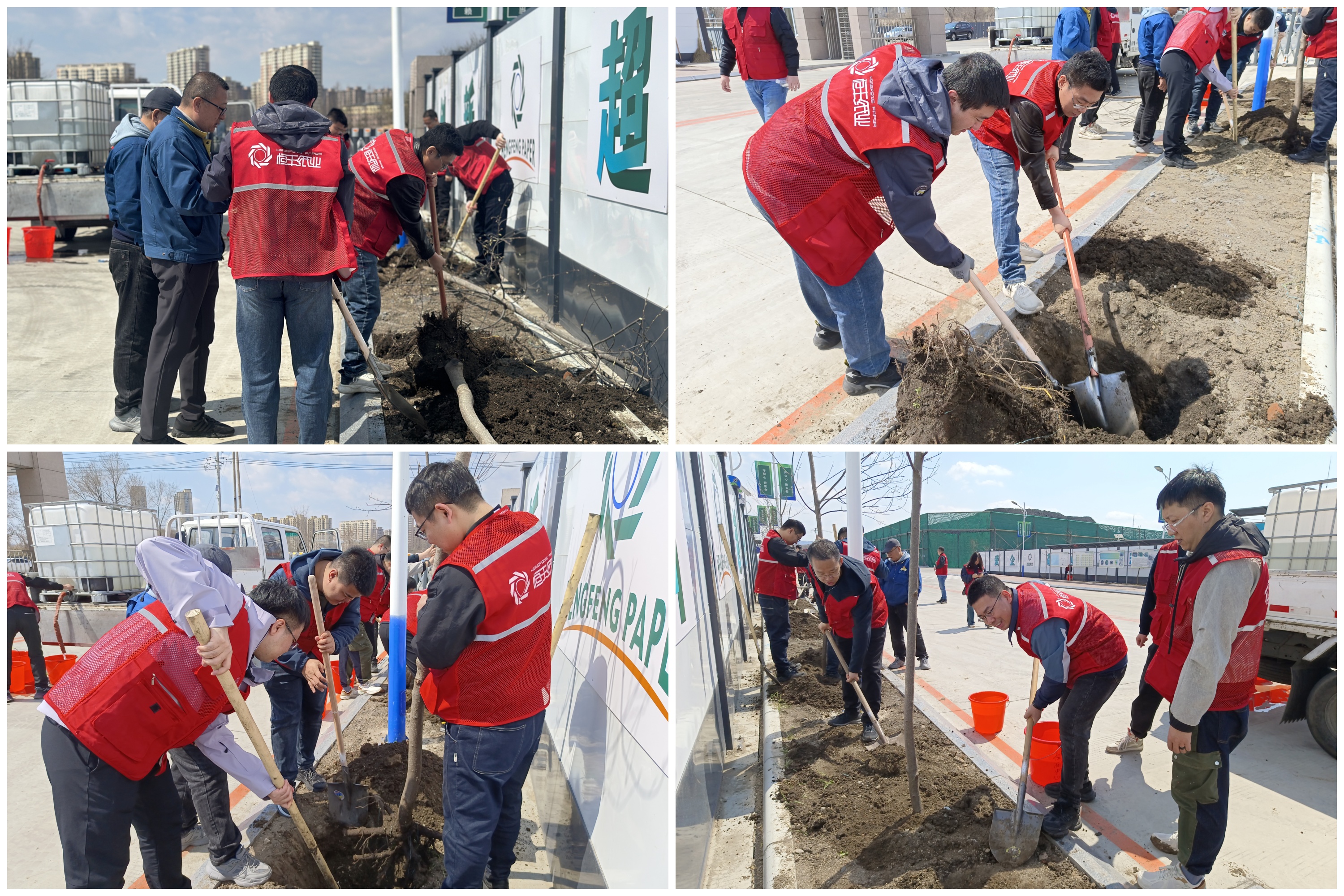 徒步活動結束后,志愿者團隊乘車返回恒豐紙業(yè)南區(qū)停車場,在規(guī)劃區(qū)域開展植樹活動。由綠化保潔部現(xiàn)場指導,選擇適宜樹種樹苗,挖坑、培土、澆水井然有序。