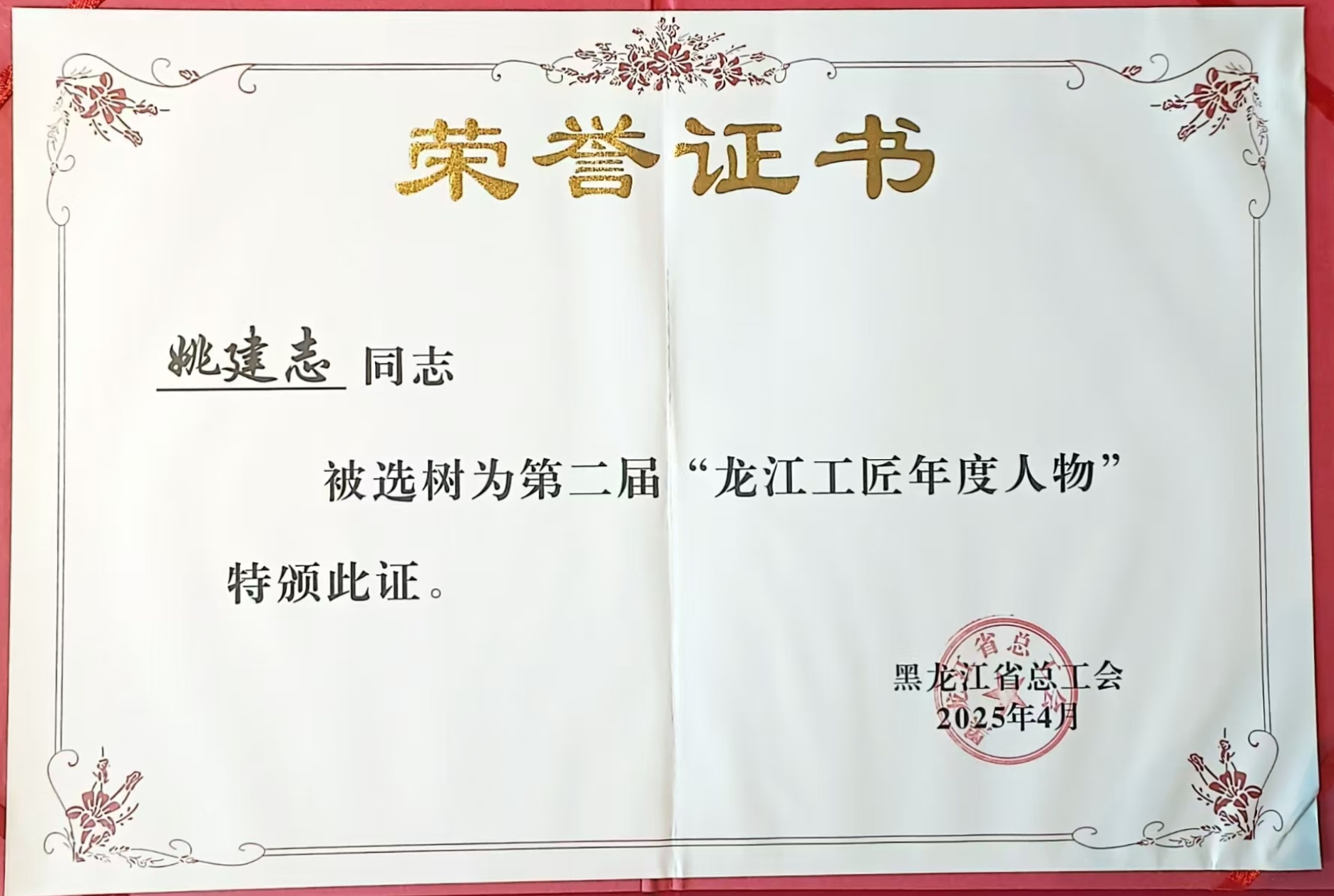 恒豐紙業(yè)姚建志榮膺第二屆“龍江工匠年度人物?”