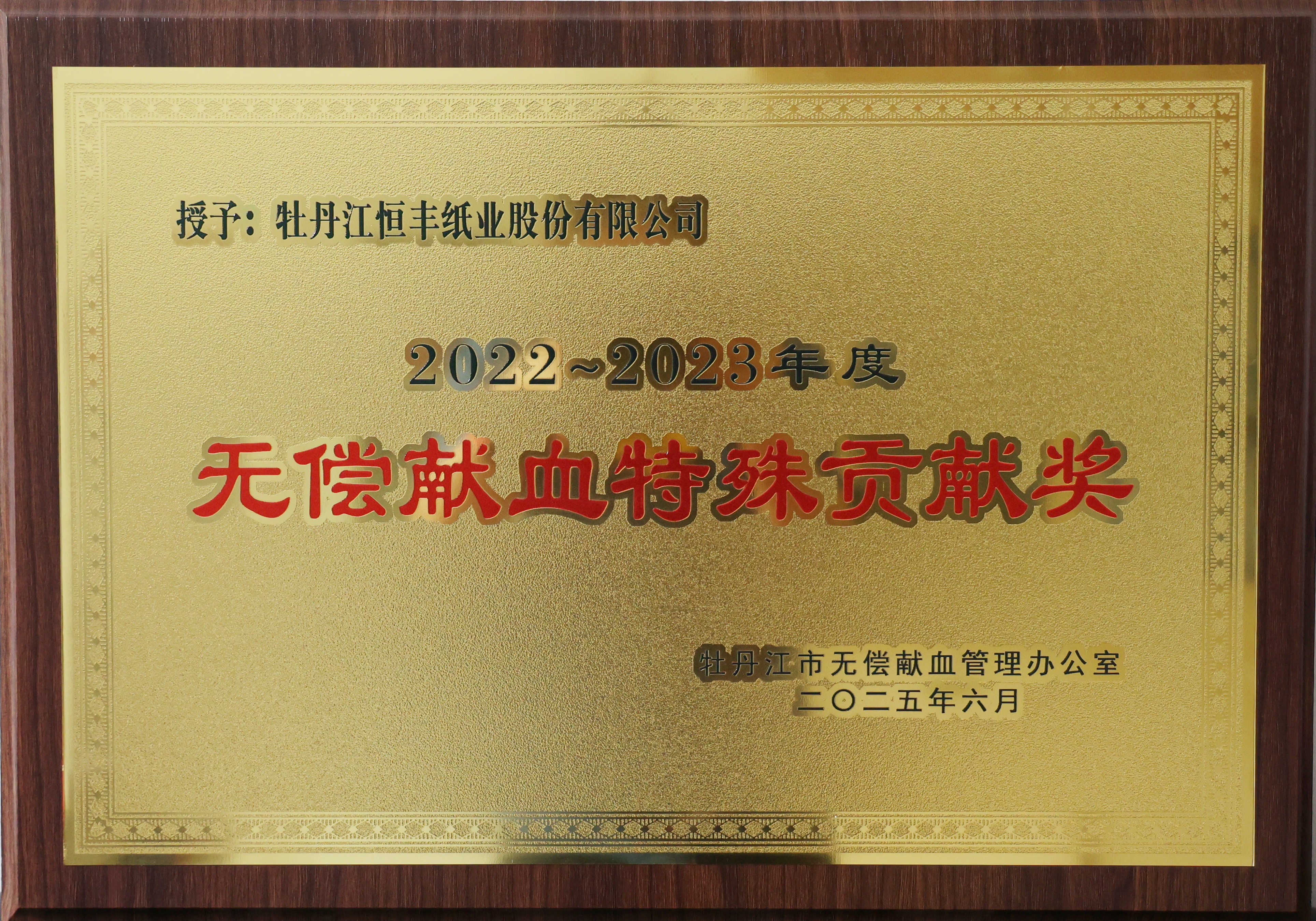 恒豐紙業(yè)榮獲“2022-2023年度無(wú)償獻(xiàn)血特殊貢獻(xiàn)獎(jiǎng)”