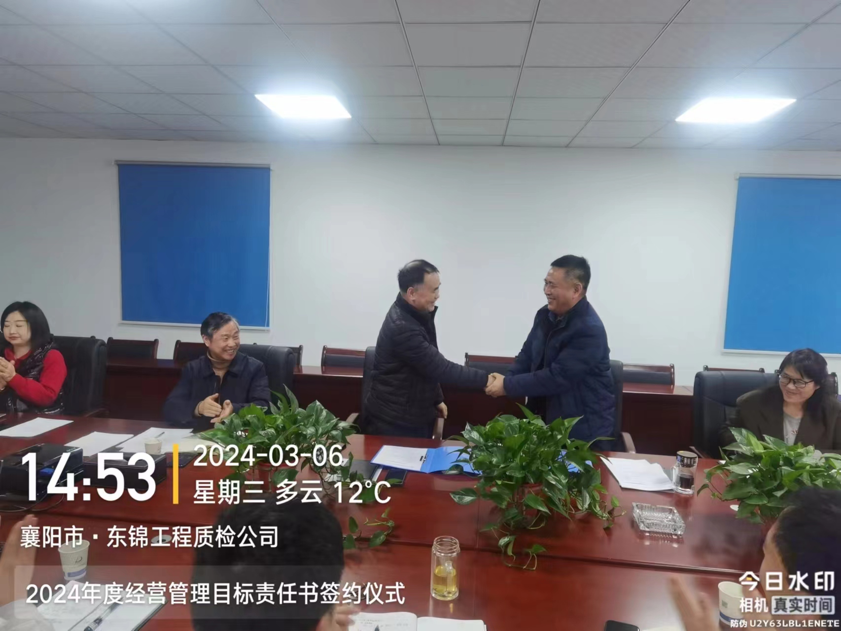 閱讀次數(shù):1035 發(fā)布時間:2024年03月06日2024年3月6日,集團公司董事長魯總主持召開檢測公司2024年度目標責任書簽訂儀式。公司董事長侯修煉就2024年度經(jīng)營工作目標及管理工作目標向集團公司簽下目標責任書。會上魯總分別聽取了侯總、何總、胡萍總的述職報告,并現(xiàn)場對其進行了行為評價。魯總肯定了檢測公司2023年度做出的努力,并針對存在的問題提出了指導意見,希望檢測公司在新的一年里能夠再接再厲、再創(chuàng)輝煌。