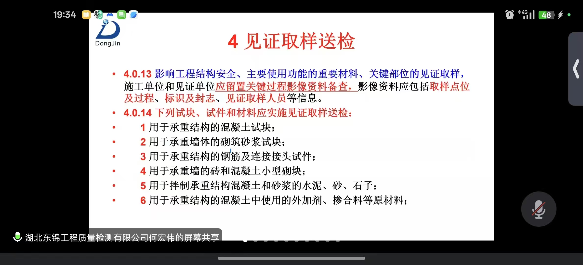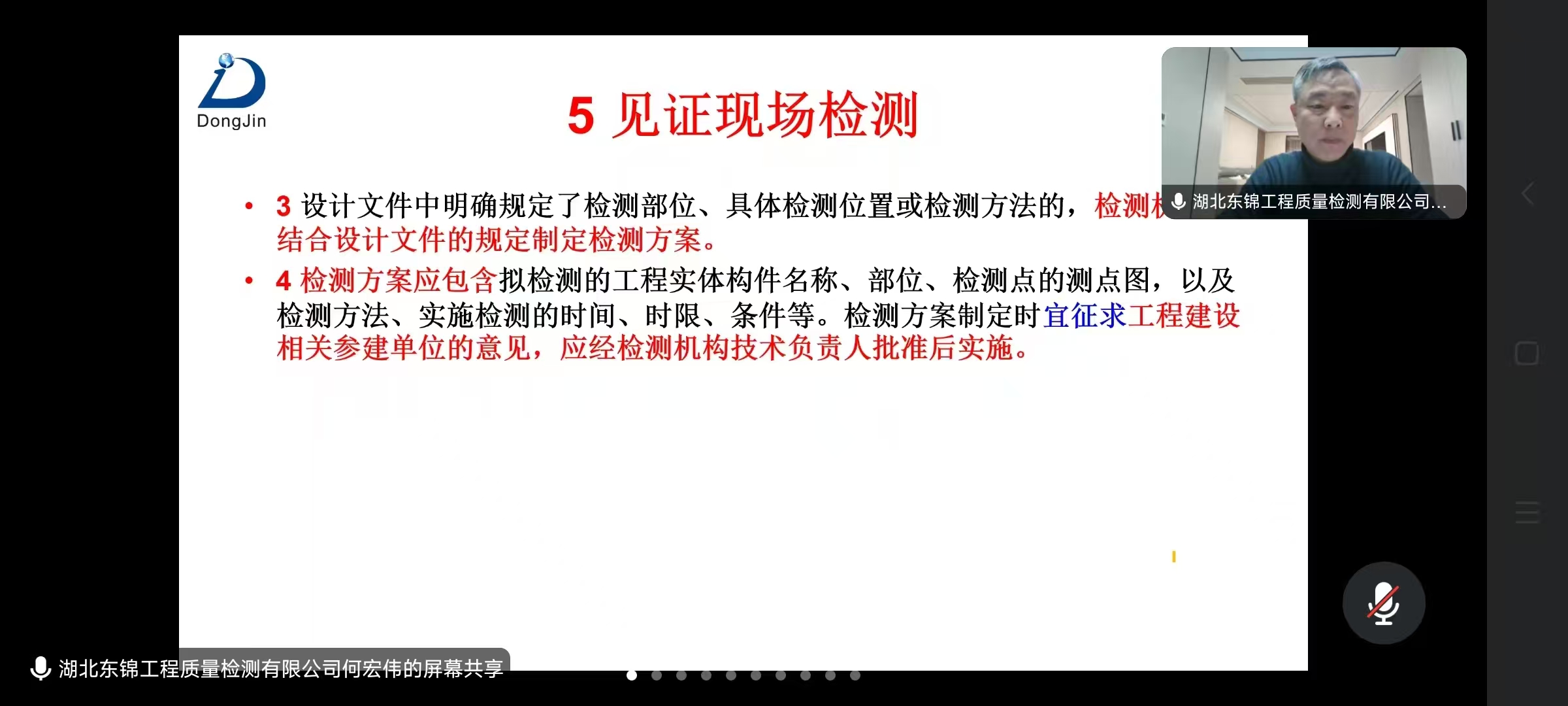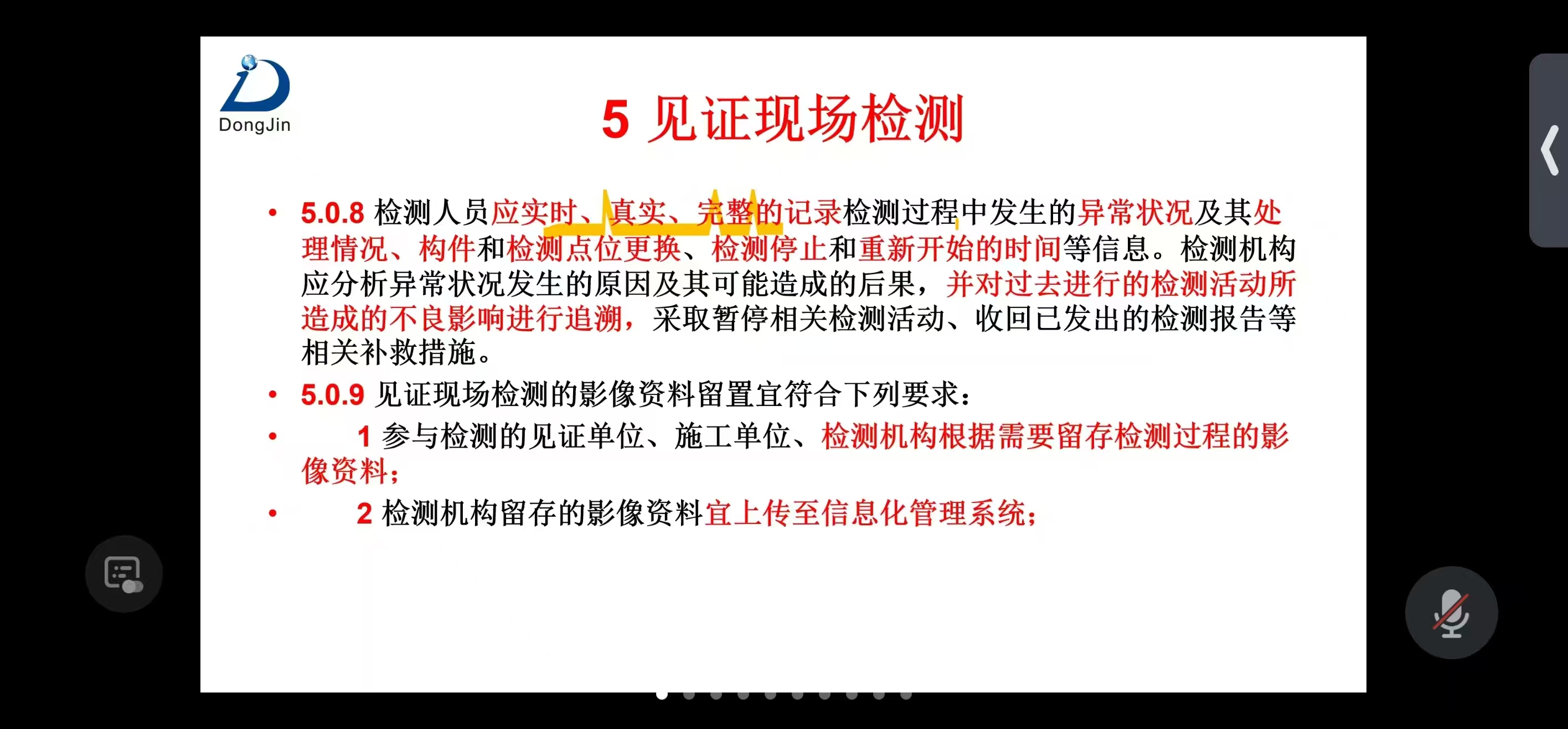 閱讀次數(shù):797 發(fā)布時間:2025年02月09日2025年2月8日晚7點(diǎn),公司總經(jīng)理何宏偉主講《建設(shè)工程見證取樣檢測標(biāo)準(zhǔn)》培訓(xùn)。此次培訓(xùn)將重點(diǎn)講解工程質(zhì)量檢測中涉及的檢測、建設(shè)、監(jiān)理、施工單位等各方的責(zé)任界限,以及作為檢測單位應(yīng)遵守的檢測標(biāo)準(zhǔn)。通過培訓(xùn),參建各方將更清晰地了解各自的職責(zé)和義務(wù),確保工程質(zhì)量檢測的規(guī)范性和有效性。
