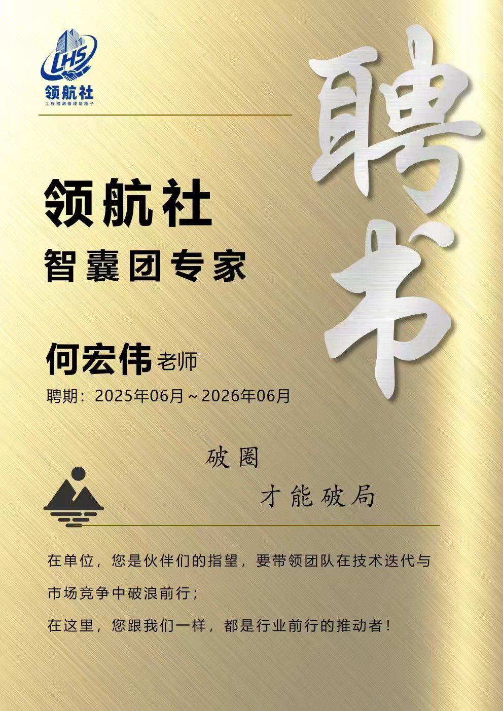 何宏偉總經(jīng)理被聘為“領(lǐng)航社智囊團(tuán)專家”