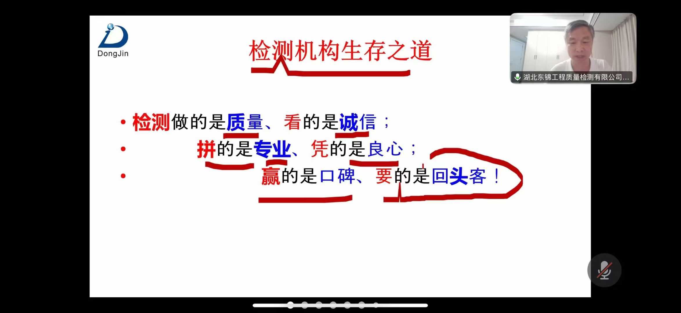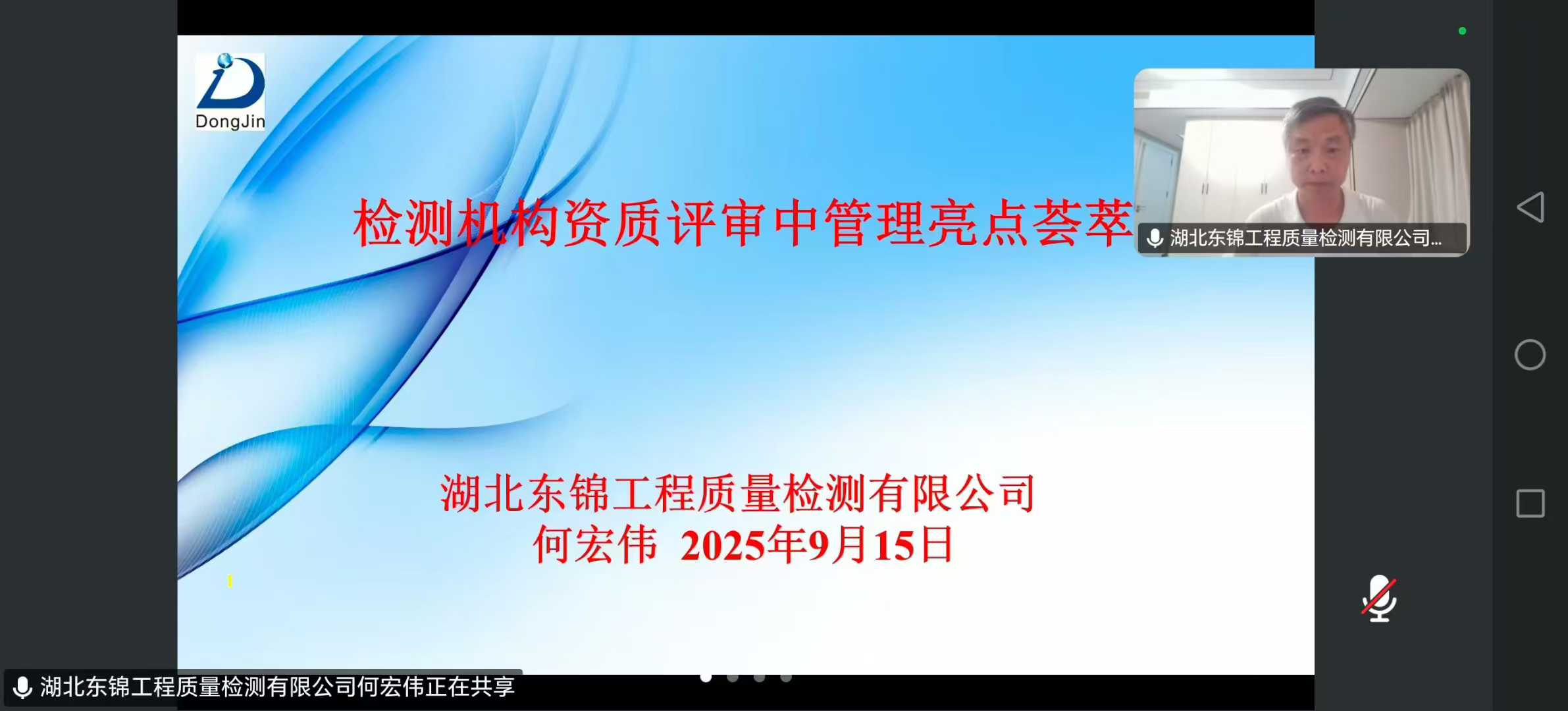 閱讀次數(shù):228 發(fā)布時間:2025年09月16日今年9月是全國第48個“質量月”,為確?!辟|量月”系列活動取得實效,湖北東錦工程質量檢測公司總經理何宏偉于15日19:00在線上開展《檢測機構資質評審中管理亮點薈萃》培訓活動。