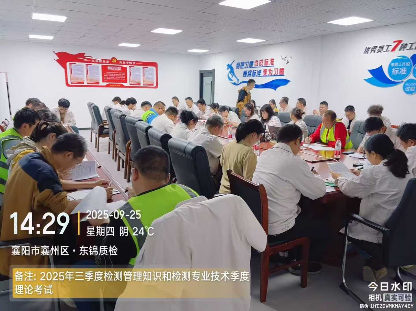 2025年9月25日,東錦檢測公司2025年三季度檢測管理知識和檢測專業(yè)技術(shù)理論閉卷考試如期舉行。全體檢測人員齊聚考場,以筆為劍檢驗專業(yè)素養(yǎng)。作為公司“理論筑基 技能強兵”年度培訓(xùn)計劃的重要環(huán)節(jié),考試通過“以考促學(xué)、以學(xué)促用”的方式,系統(tǒng)評估檢測人員對專業(yè)理論知識的掌握程度與實際應(yīng)用能力。