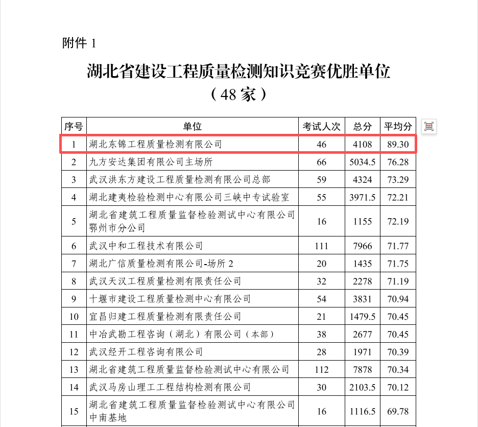 近日,從湖北省建設工程質量安全協會傳來喜訊:在剛剛落幕的2025年湖北省建設工程質量檢測知識競賽中,我公司憑借扎實的專業(yè)功底、出色的現場發(fā)揮和卓越的團隊協作,從眾多參賽隊伍中脫穎而出,榮獲大賽最高榮譽——“優(yōu)勝單位”稱號。這一殊榮充分彰顯了公司在建設工程質量檢測領域的深厚技術積淀與人才優(yōu)勢。