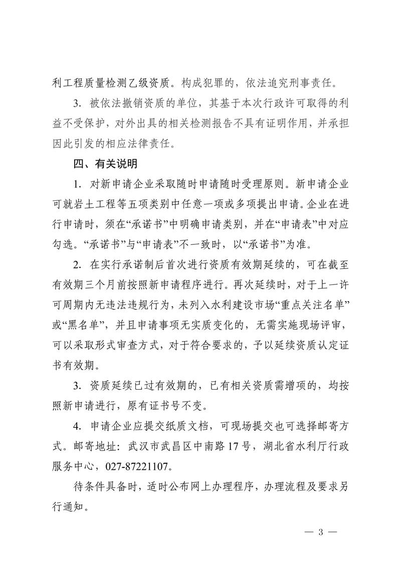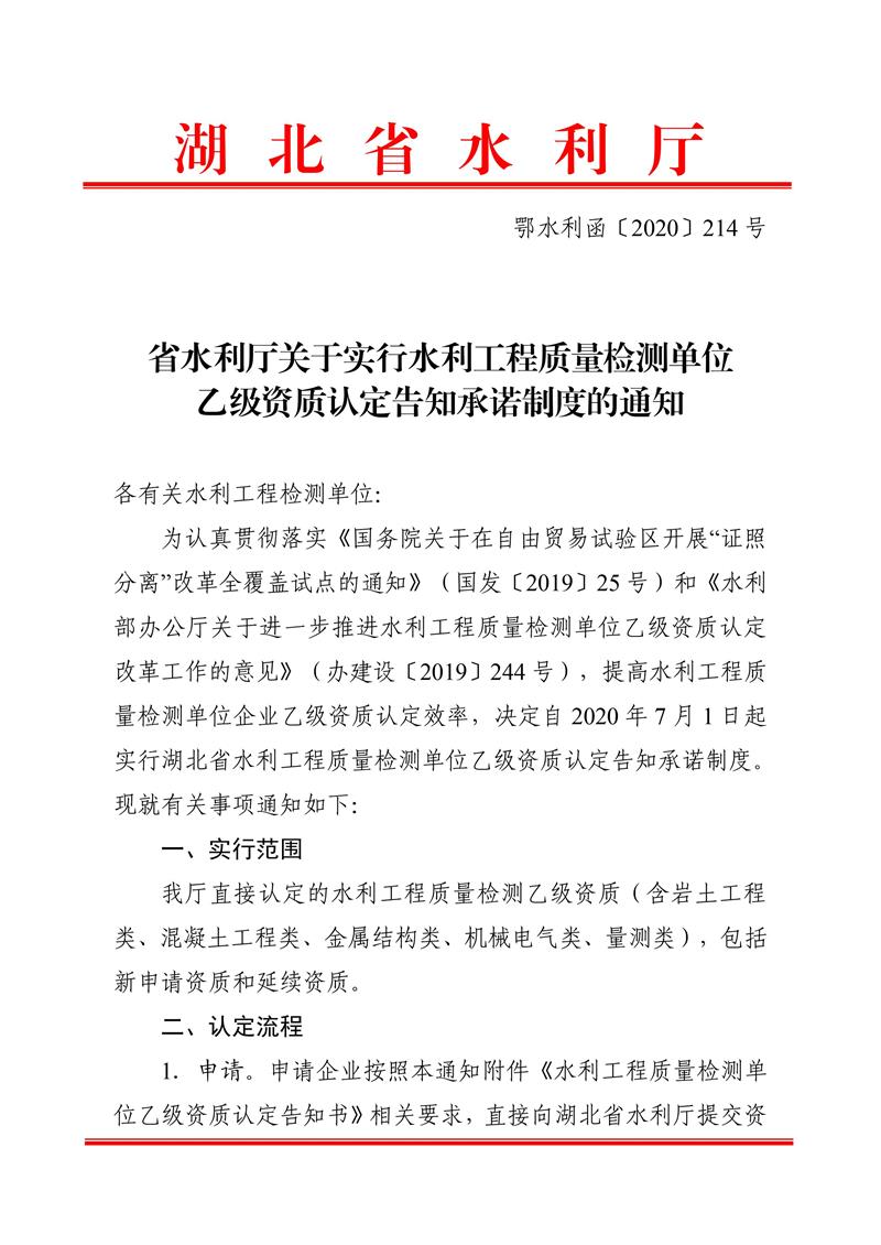 湖北省水利廳關于實行水利工程質量檢測單位乙級資質認定告知承諾制度的通知
